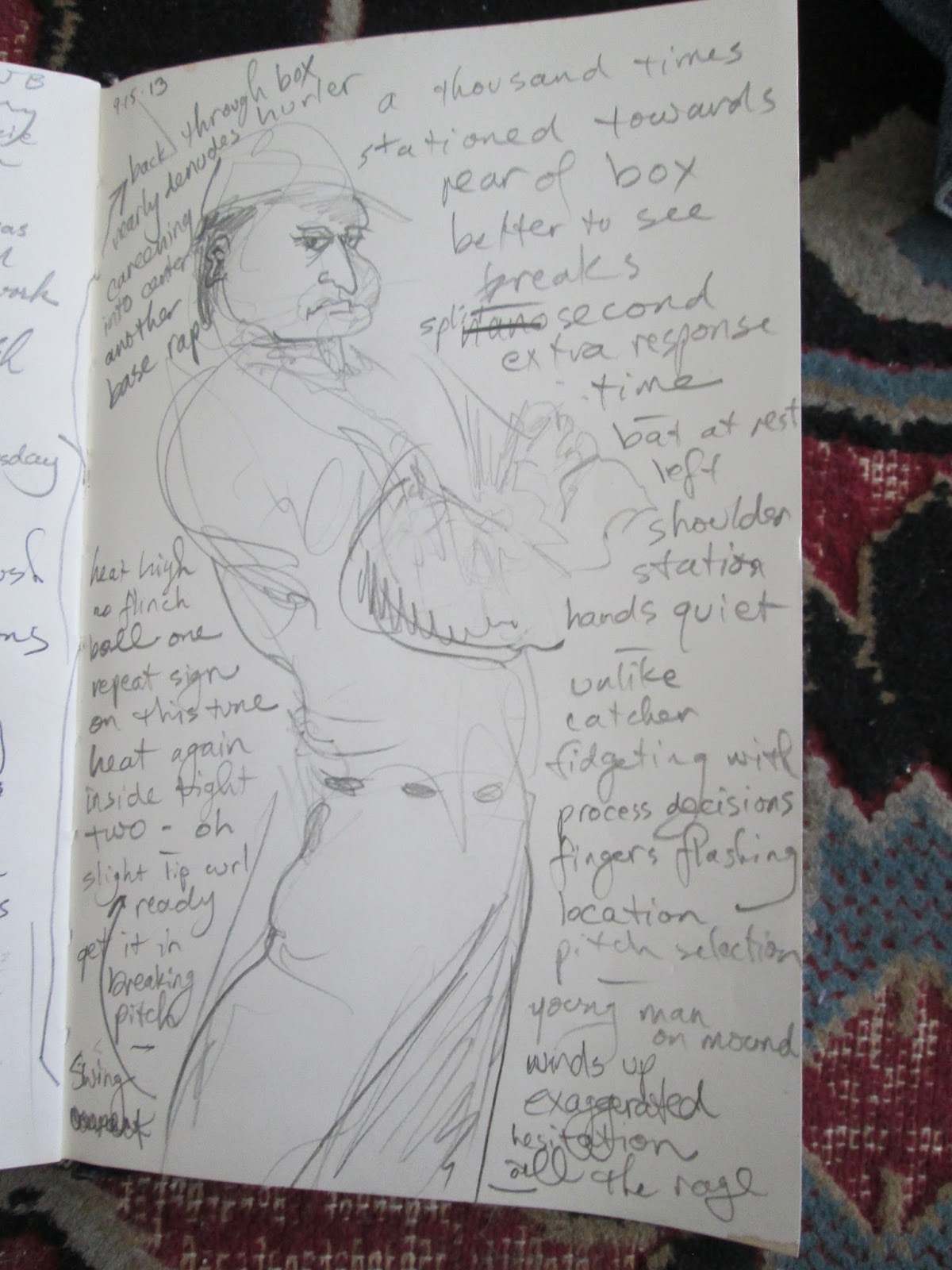 So, it has been a real tumultuous time, dealing with my father dying, when this just came to me today. Thought I would share the process from sketchbook draft to illustration first pass and next draft of poem about Mike Johnson, the under-recognized Hops leftfielder.